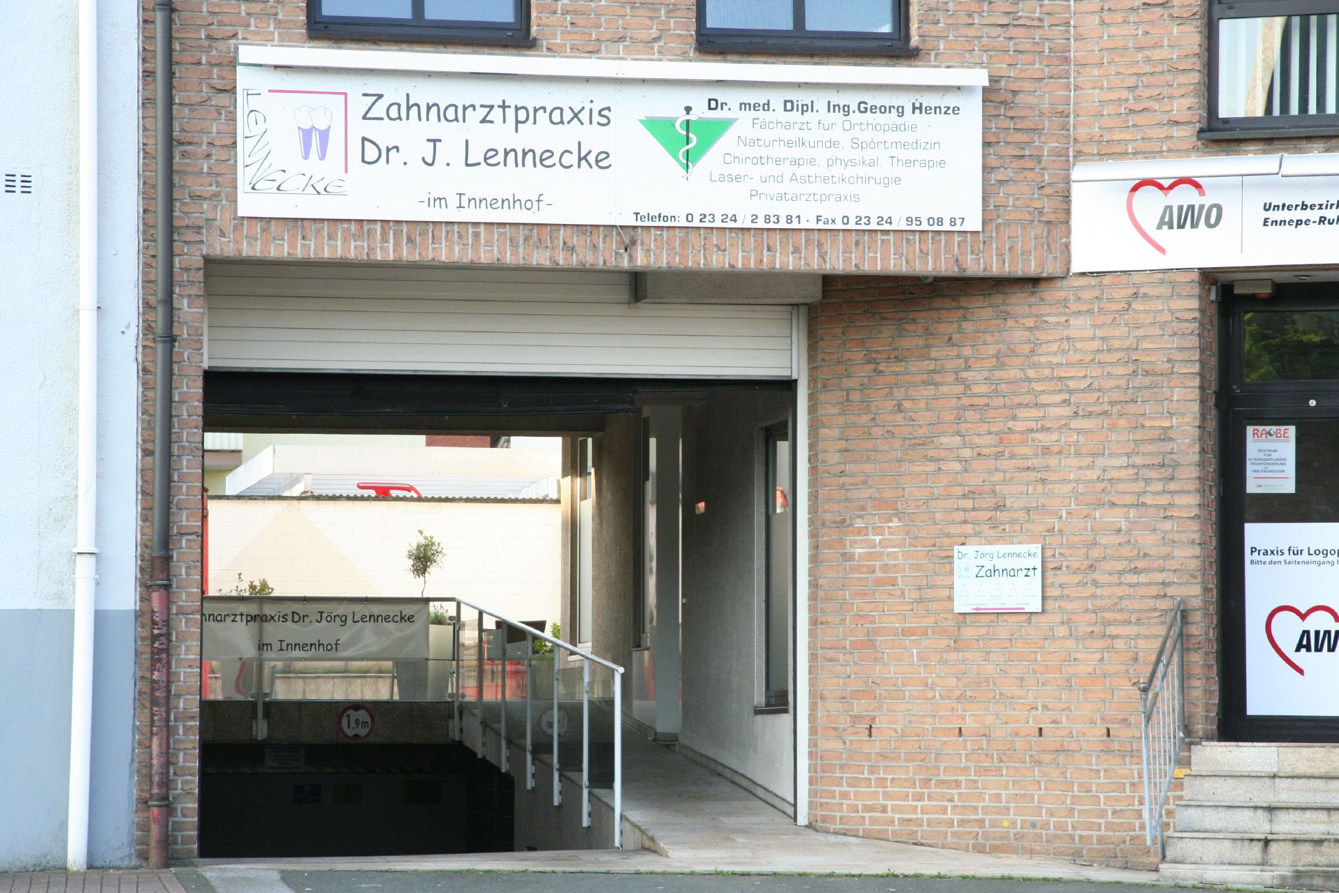 Sie liegt im Innenhof im Erdgeschoss und ist ebenerdig zu erreichen. Aufgrund der behindertengerechten Bauweise ist die Praxis auch für Elektrorollstühle befahrbar.
